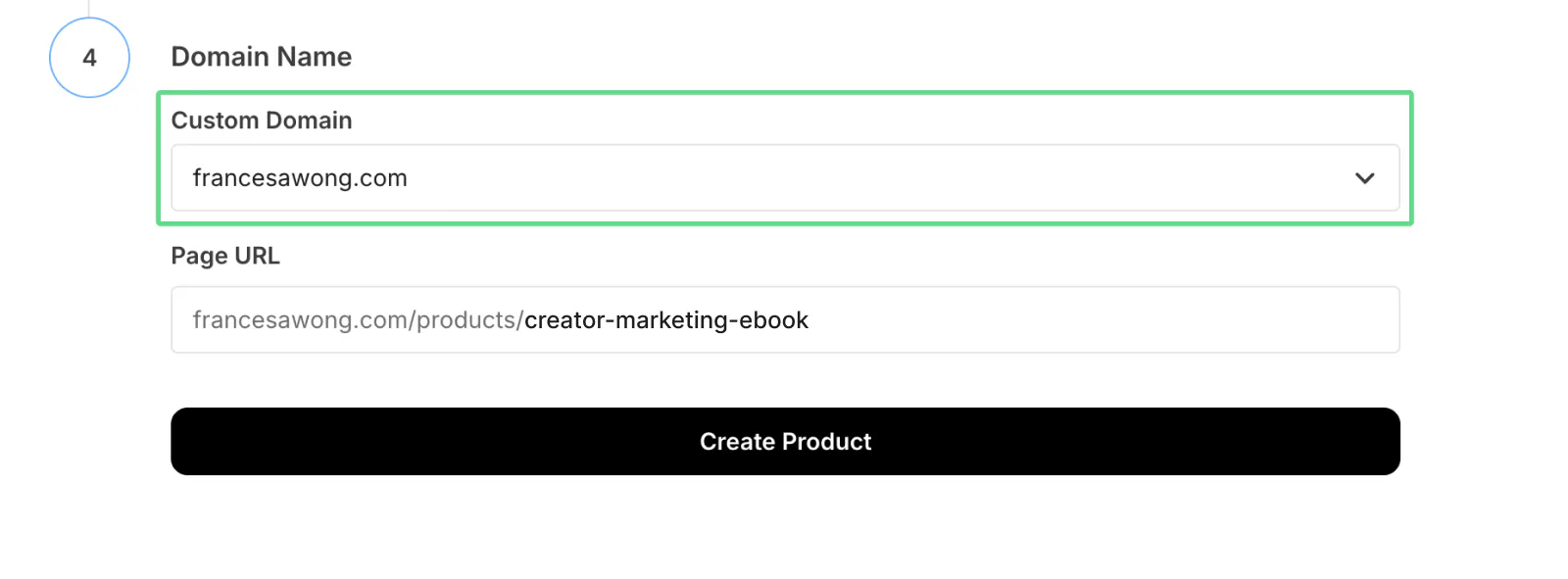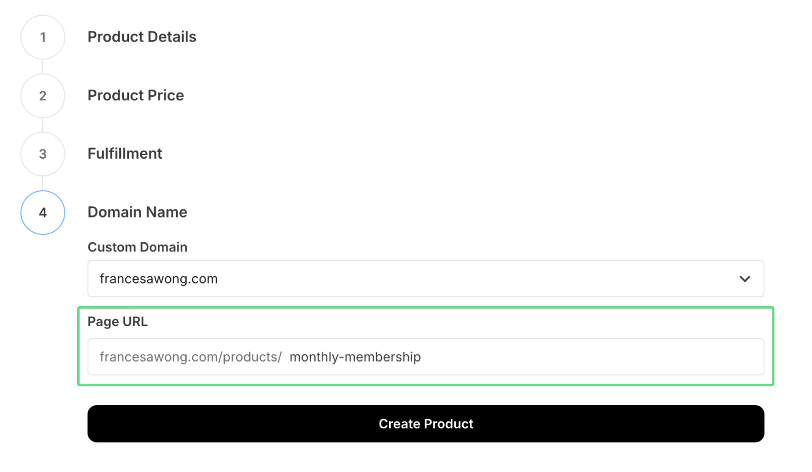 Confirm or adjust your domain or landing page where you want to sell the product. Then, click Create Product.
