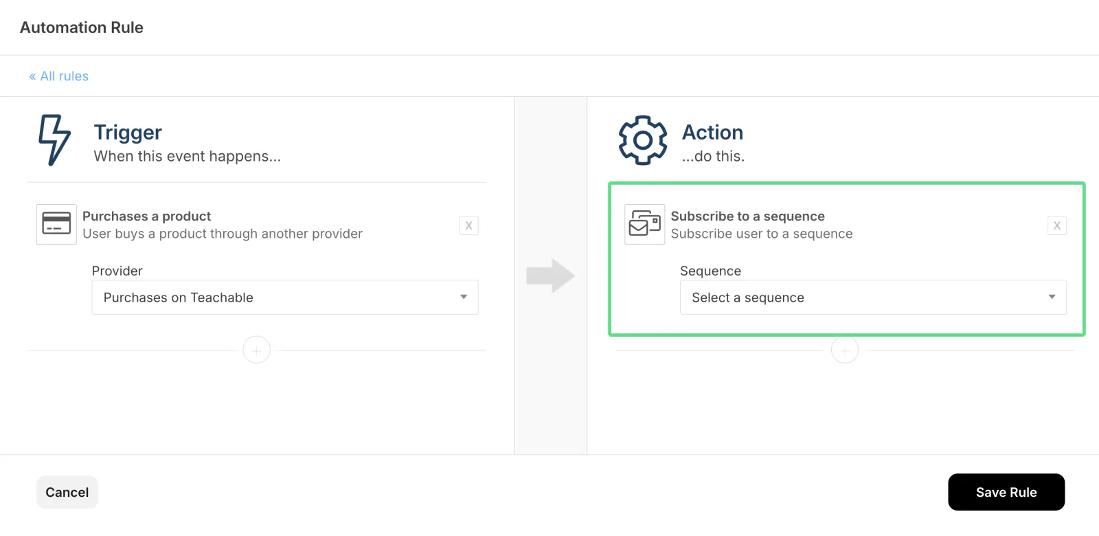 Let’s say you want to send a customized thank you email to new course subscribers. Using Kit Automation Rules, you can ensure each time someone buys your Teachable content, they immediately receive the message.