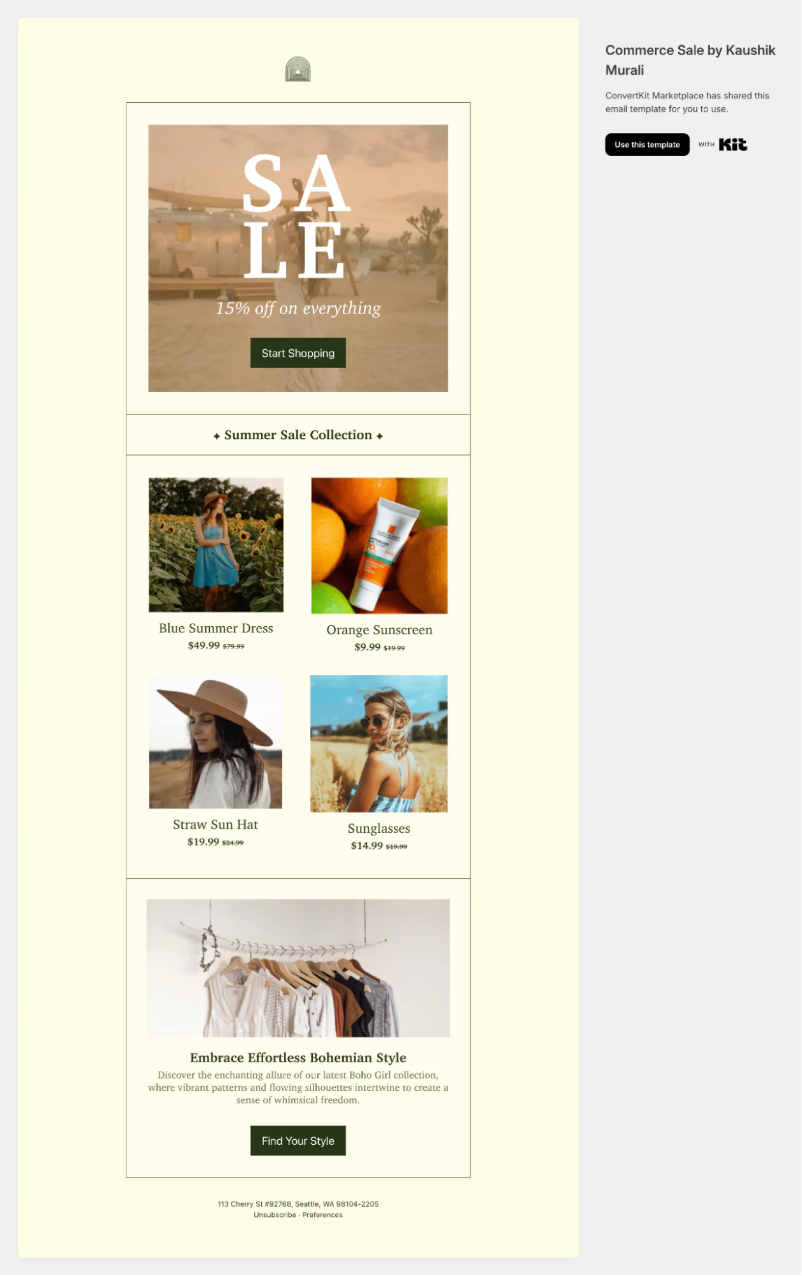 While bloggers typically list their affiliate products on their website, you can also promote them to your email list. Use this free commerce sale email template to link to your favorite products.