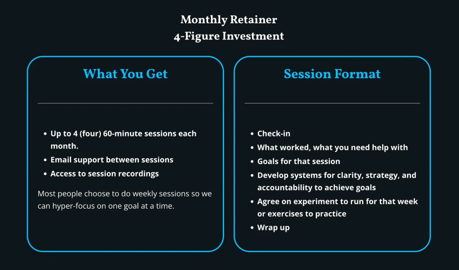 Corey’s coaching sessions have clear goals and outcomes. Image via Creator Alchemy.