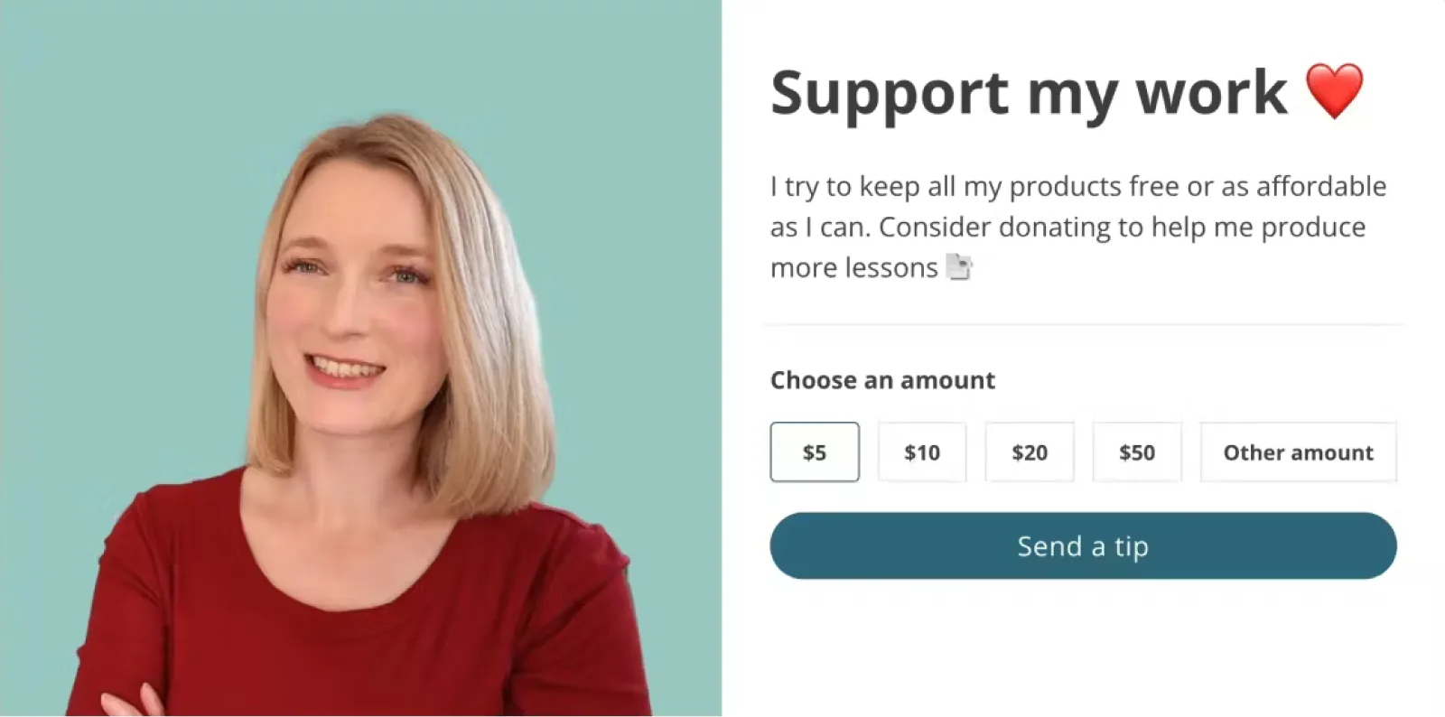 Digital tip jars are a low-pressure income stream that’s easy to set up. Since you don’t need to set a price or create new content, virtual tip jars are a quick way to give audiences a way to support their favorite musicians, writers, podcasters, and YouTubers.