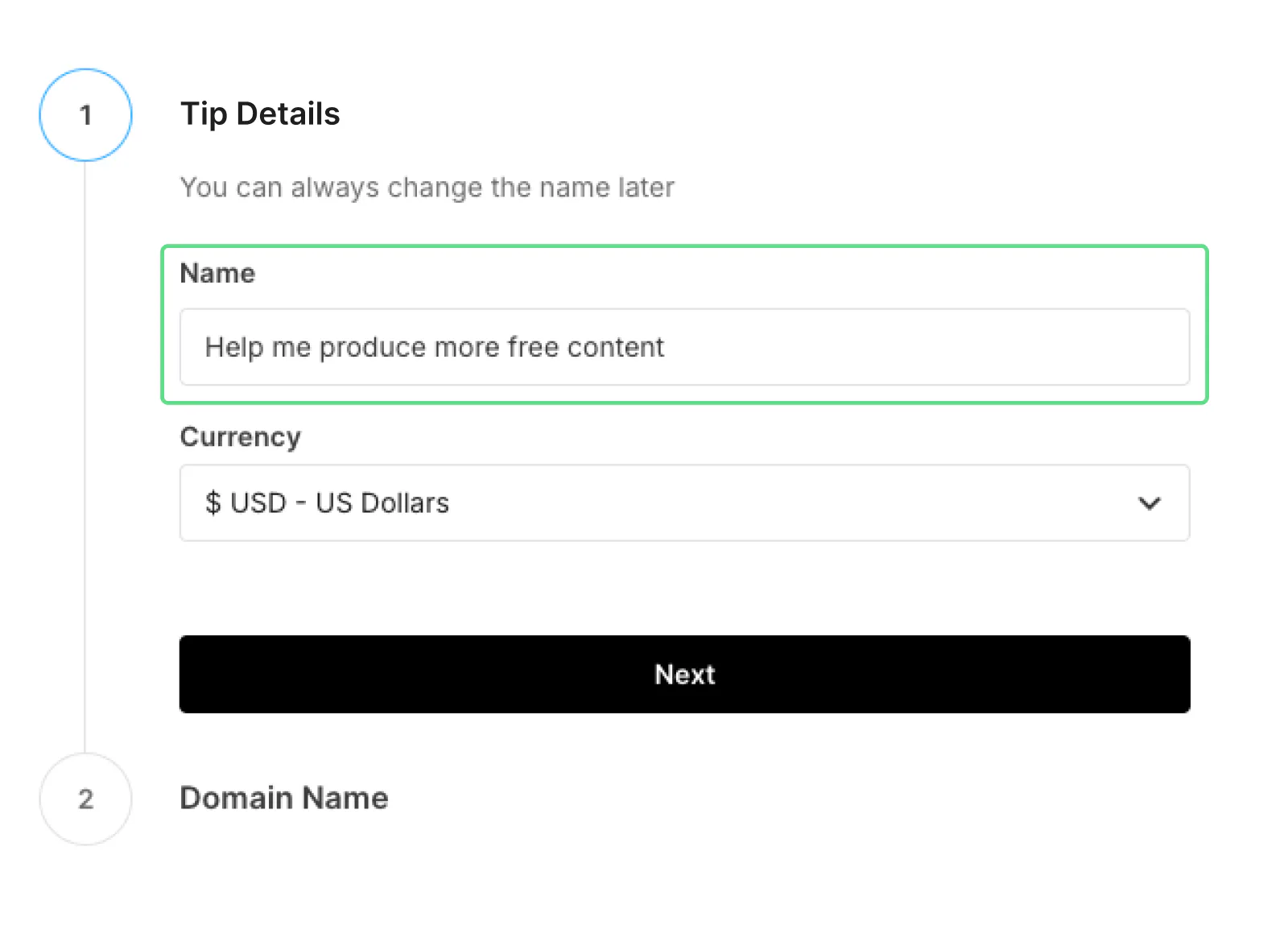 Give your virtual tip jar a name and select your currency. Click Next.