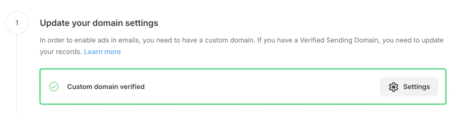 Update your domain settings by clicking Settings, if necessary.