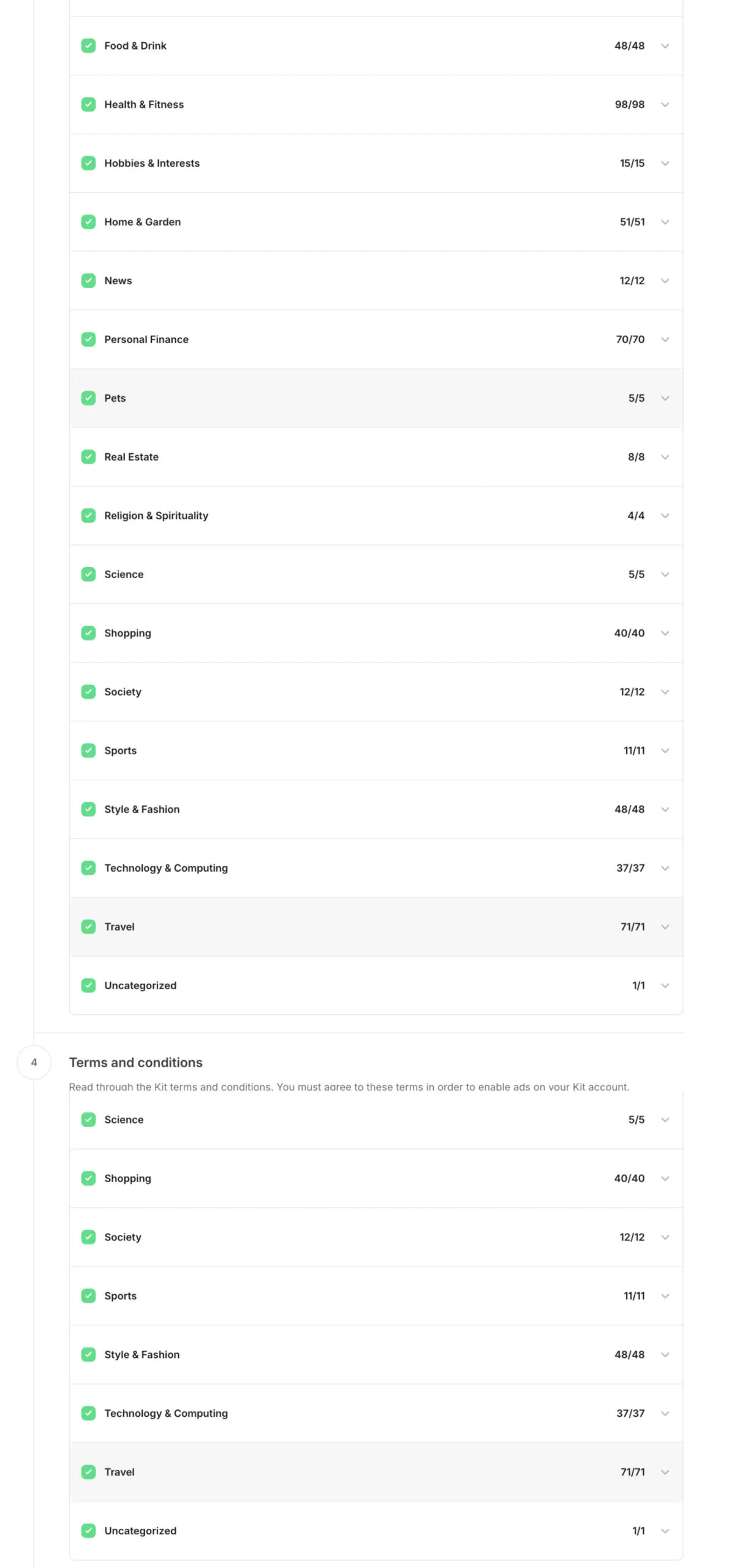Select your preferred brands by checking or unchecking categories and advertisers.