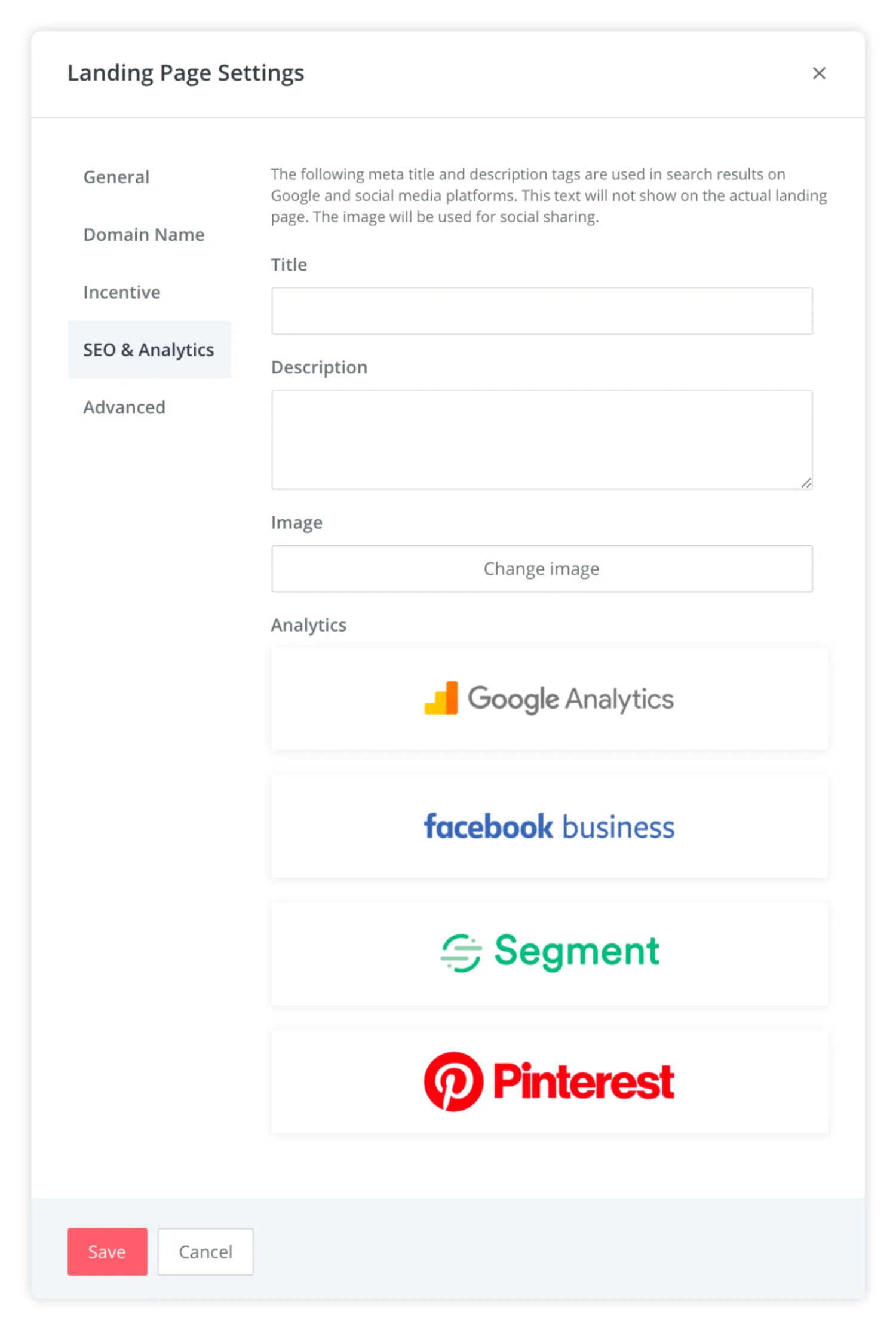 - Go to the Settings section on the landing page editor