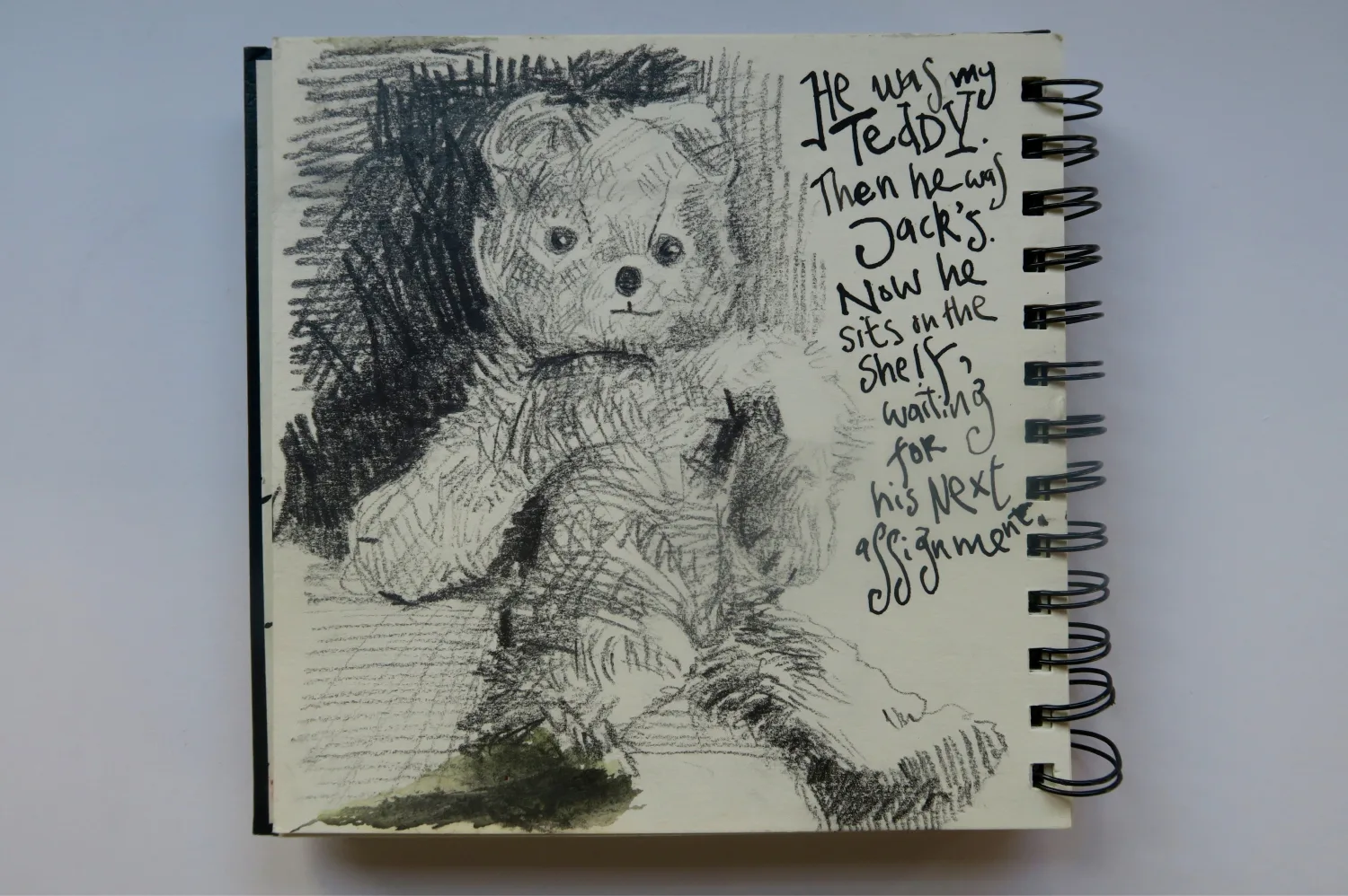 As he carefully copied outlines of orange-lidded medicine bottles into his sketchbook, something changed.