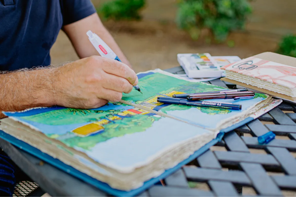 So when he started drawing and making art again, he decided to build a community on purpose to connect with other artists, especially those who did illustrated journaling like he was doing, recording life in sketchbook form.